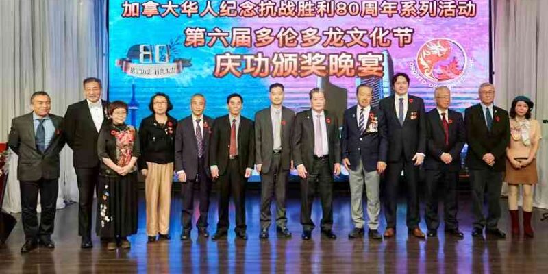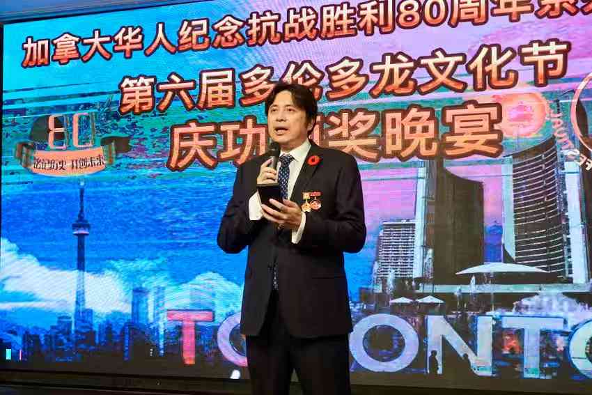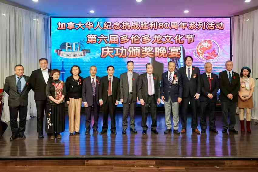 多伦多讯 记者吕欧图文报道 为期一年的第六届多伦多龙文化节暨纪念世界反法西斯战争和中国人民抗日战争胜利80周年系列活动,于11月5日晚在豪门宴大酒楼举行的庆功晚宴中正式落下帷幕。晚会汇聚了逾300名当地侨领、政商界与文化艺术界人士,共同回顾系列活动成果,并表彰了贡献卓著的社区成员。