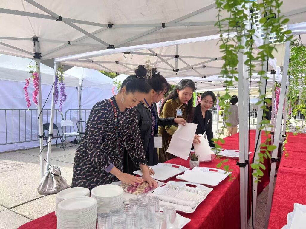 广场周边还设立数十个美食与文化摊位,糖葫芦、煎饼果子香气四溢,书法、国画、湘绣现场展示,令市政厅广场化身为一座浓缩的中华文化街区。