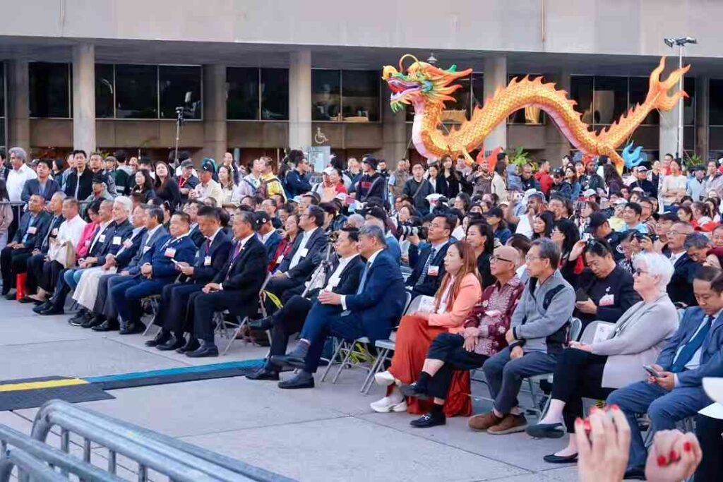 多伦多讯 记者燕雲报道 当地时间8月29日晚,在多伦多市政厅广场数千名观众齐声倒计时中,一条象征吉祥与力量的中华金龙被点亮。霎时间鼓乐震天、金光流转,仿佛巨龙腾空而起,正式为第六届多伦多龙文化节(Toronto Dragon Festival)拉开辉煌序幕。