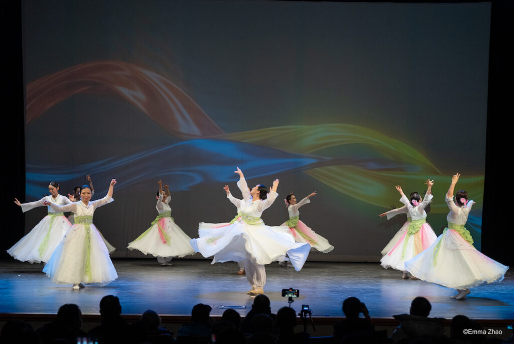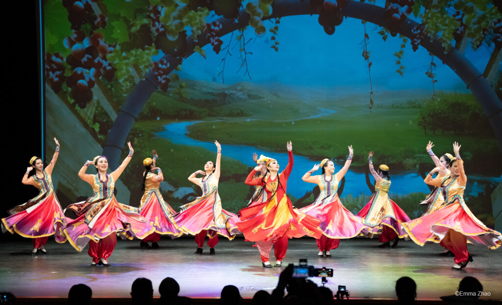 演出在开场舞《家乡》中拉开帷幕。该舞蹈融合多民族艺术元素,既抒发了对故土的眷恋,也表达了对加拿大这个“第二故乡”的归属感,传递出团结与融合的主题。