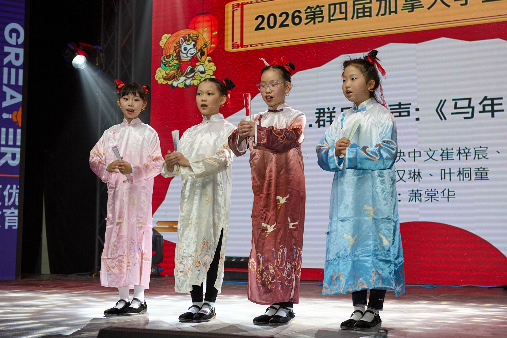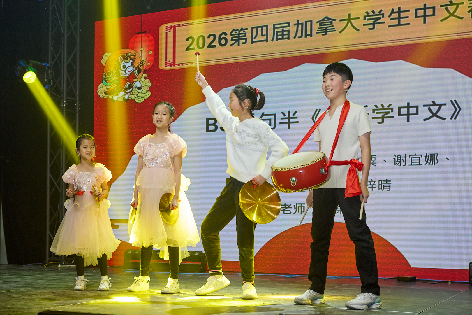 本网讯 记者燕雲报道 2月8日,第四届加拿大学生中文春晚在多伦多成功举行。本届晚会由双快中文学校主办,更优教育及加拿大小象传媒协办,四百多名观众到场。晚会以学生为主体、以中文为载体,参演演员年龄最小的仅两岁,全体小演员们通过说唱、舞蹈、音乐剧等一系列富有创意的现代表演形式,生动演绎并传承中华优秀传统文化,为海外华裔青少年提供了一次别开生面的文化实践与自信表达舞台。