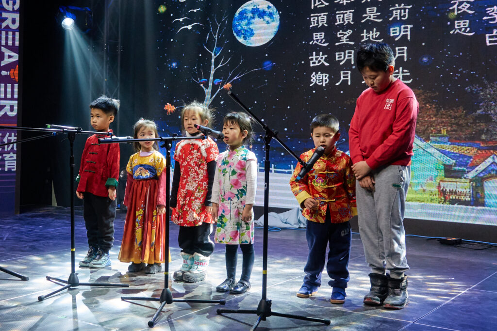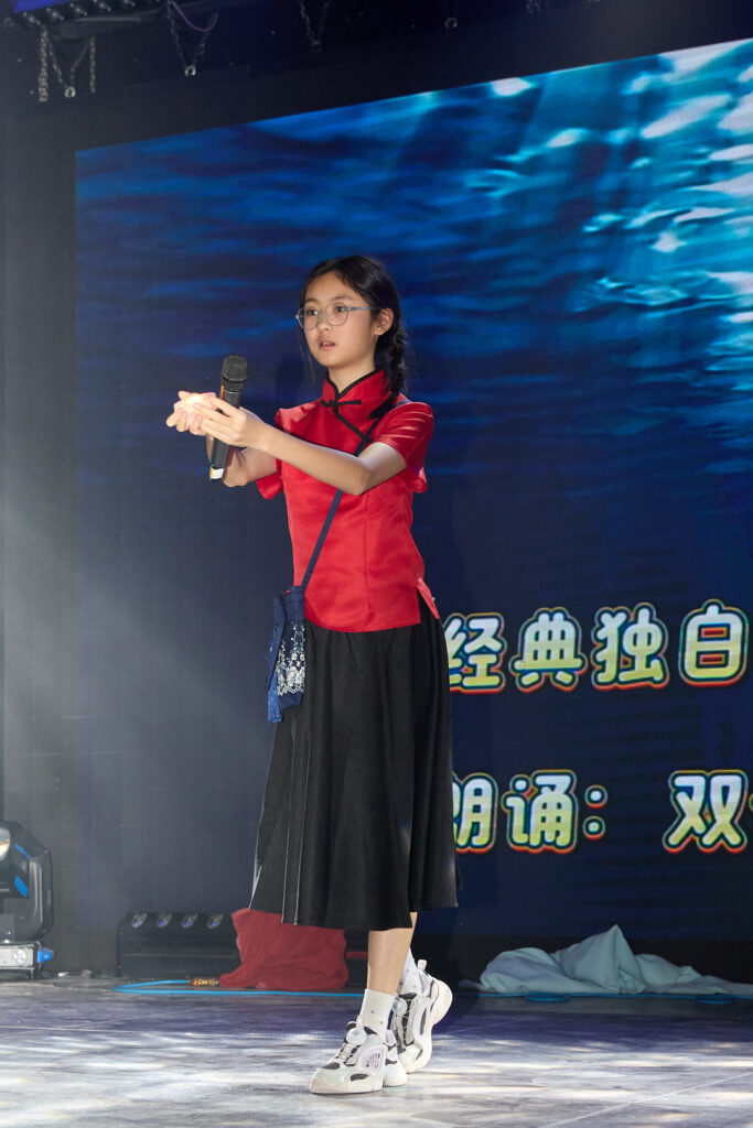 其中,由双快中文学校原创、家长与孩子共同演出的《亲子大话西游》节目,成为晚会情感浓度的高点。节目巧妙地将《西游记》的阅读体验搬上舞台,通过父子演绎“紧箍咒”的幽默片段、母女探讨“取经意义”的哲理对话,以及孩子们分享各自从书中人物身上学到的勇气、智慧与团队精神,生动展现了经典阅读如何成为连接亲子代际、深化文化理解的情感纽带。家长们也分享了他们在共读中收获的陪伴喜悦与对中文之美的重新发现。一位家长代表感慨道:“孩子在舞台上用中文朗诵、表演、主持,中文从课本变成了可感、可演的鲜活语言,自信就在一次次排练与登台中慢慢长出来。”