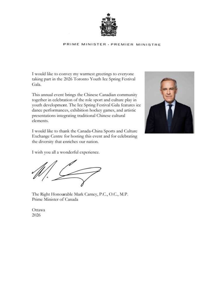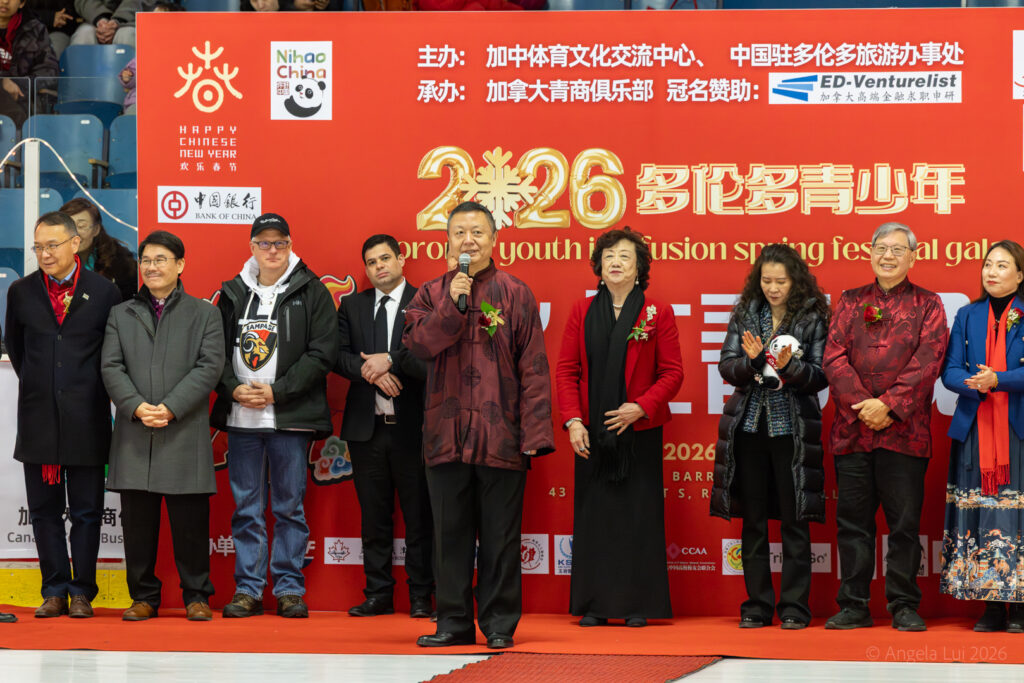 中国驻多伦多总领事罗伟东出席活动并致辞。他表示,将中华传统节庆文化与加拿大冰雪运动相融合,不仅生动弘扬了中华文化,也搭建起中加文化与体育交流的特色平台。近期加拿大总理卡尼访华取得积极成果,为两国人文与体育交流带来新的发展契机。他期待两国青少年以冰为媒、以艺会友,成为中加友好的传承者与推动者。