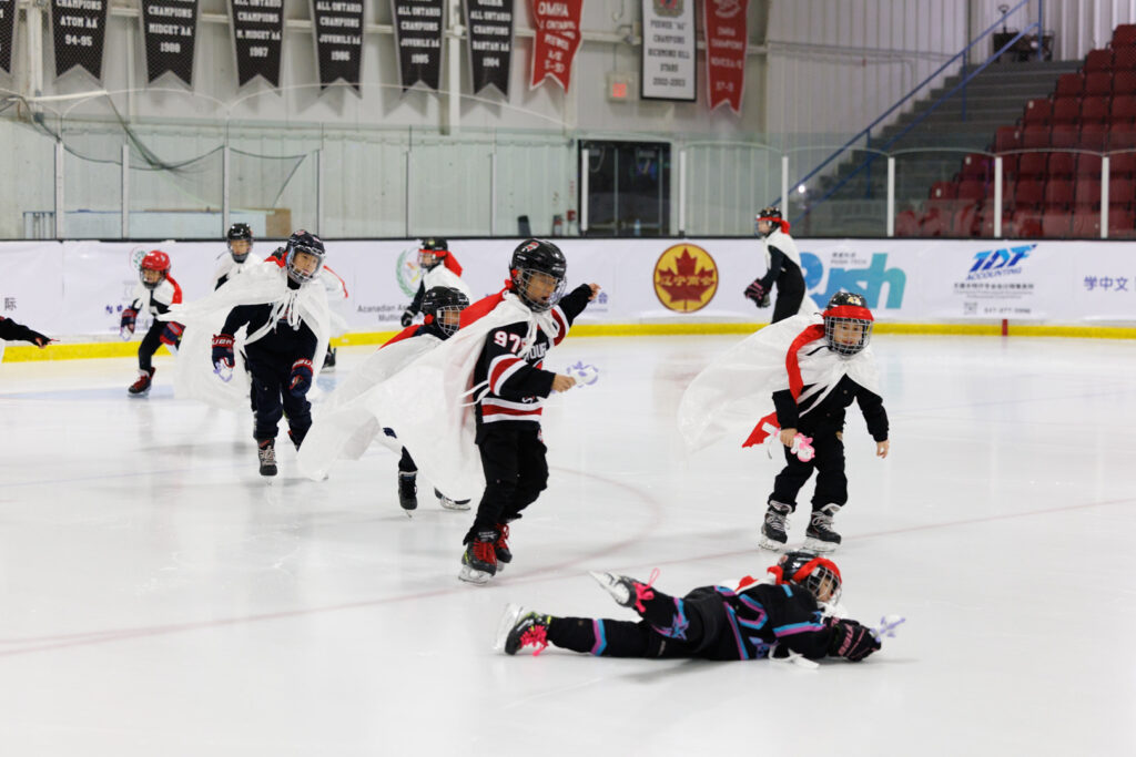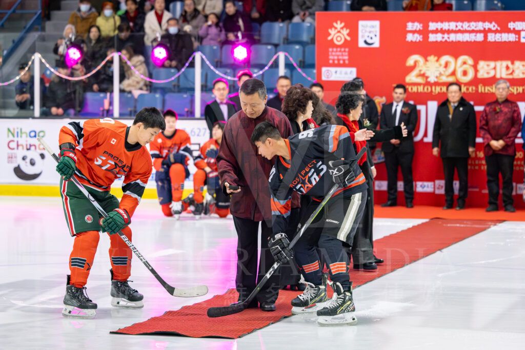 罗伟东、韩进雯、武宁、David West共同开球。参赛的28名运动员出生于2012年和2013年,来自GTHL和OMHA联盟,代表了北美同年龄段青少年冰球的较高水准。30分钟的比赛节奏紧凑、对抗激烈,在快节奏攻防中呈现出冰球运动的激情与对抗的魅力。