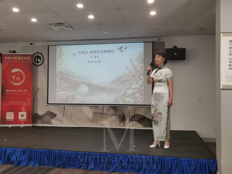 值得一提的是,随友人一同前来参加活动的孟红女士,原为山西大同歌舞团独唱演员、国家一级演员。她被海外华人在清明时节以诗诵寄托祭祖心愿的真情深深打动,现场欣然决定加入加拿大朗诵艺术团。在热烈掌声中,孟红老师即兴清唱一曲《白发亲娘》,为诗会掀起一个小高潮。
