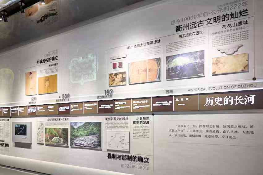 展览馆通过“历史长河”“当代画卷”“未来蓝图”三大展区,全方位呈现衢州六千多年的文明脉络与发展愿景。