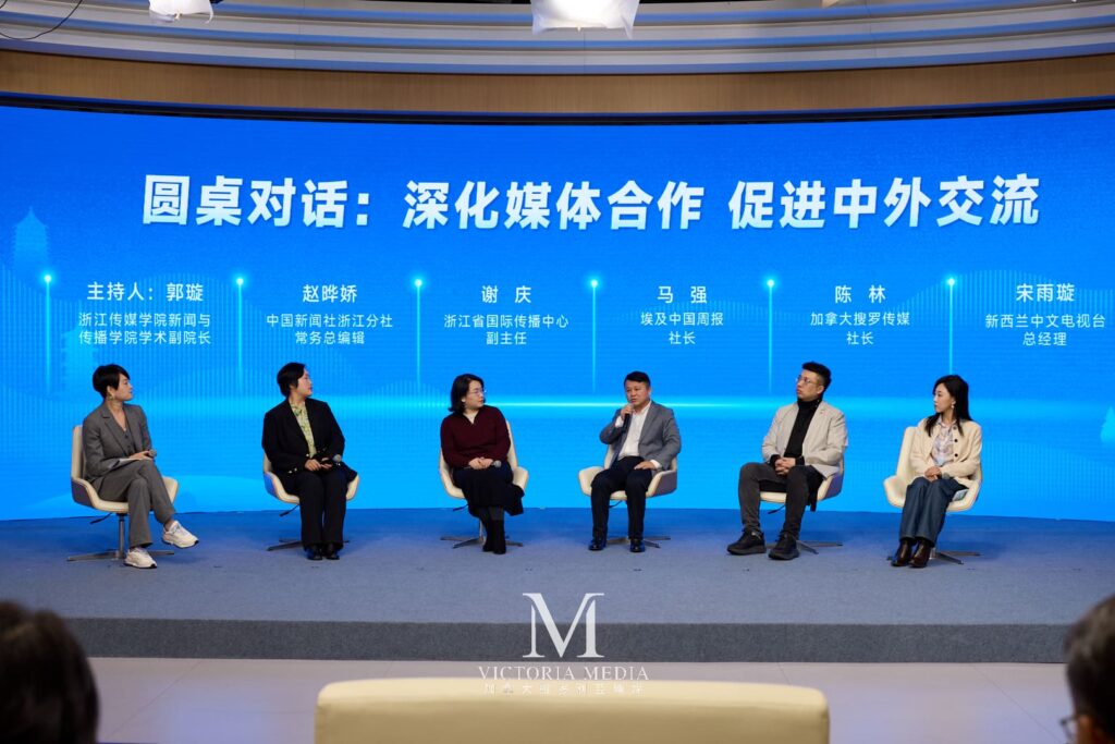 省委统战部副部长吴炳芳出席启动仪式并讲话,浙江日报报业集团副总编辑张亮致欢迎辞。省科技厅、省商务厅相关负责人分别围绕创新浙江、开放强省建设开展主题宣介,全面展示浙江在科技创新、数字经济、对外开放等方面的生动实践。在“深化媒体合作 促进中外交流”圆桌对话环节,来自中新社浙江分社、浙江省国际传播中心、中国周报、搜罗传媒、ABC传媒集团等海内外媒体嘉宾,围绕媒体协同、国际传播、文化出海等话题深入交流,共商合作路径、共话传播新篇。