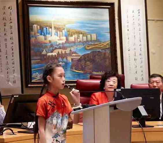 11岁华裔少女雨霏朗诵和平诗文,表达新生代对先烈的感恩与对和平的向往。