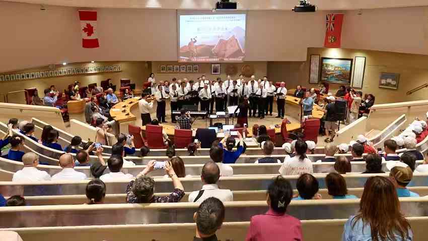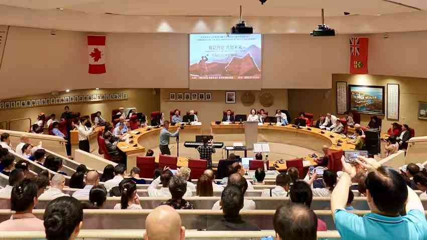本网多伦多讯 记者燕雲报道 7月26日,在《波茨坦公告》发布80周年之际,加拿大各界人士齐聚多伦多,举行“铭记历史 共创未来”纪念世界反法西斯战争暨中国人民抗日战争胜利80周年活动。活动由加拿大黄埔校友后裔联谊会和加拿大和枫会等数十家机构联合主办,来自温哥华、魁北克、中国大陆、台湾、香港等地的抗战将士后人、学者、青少年及社区代表参与,共同缅怀历史、传承抗战精神、弘扬和平理念,并促进加中友谊与跨文化交流。