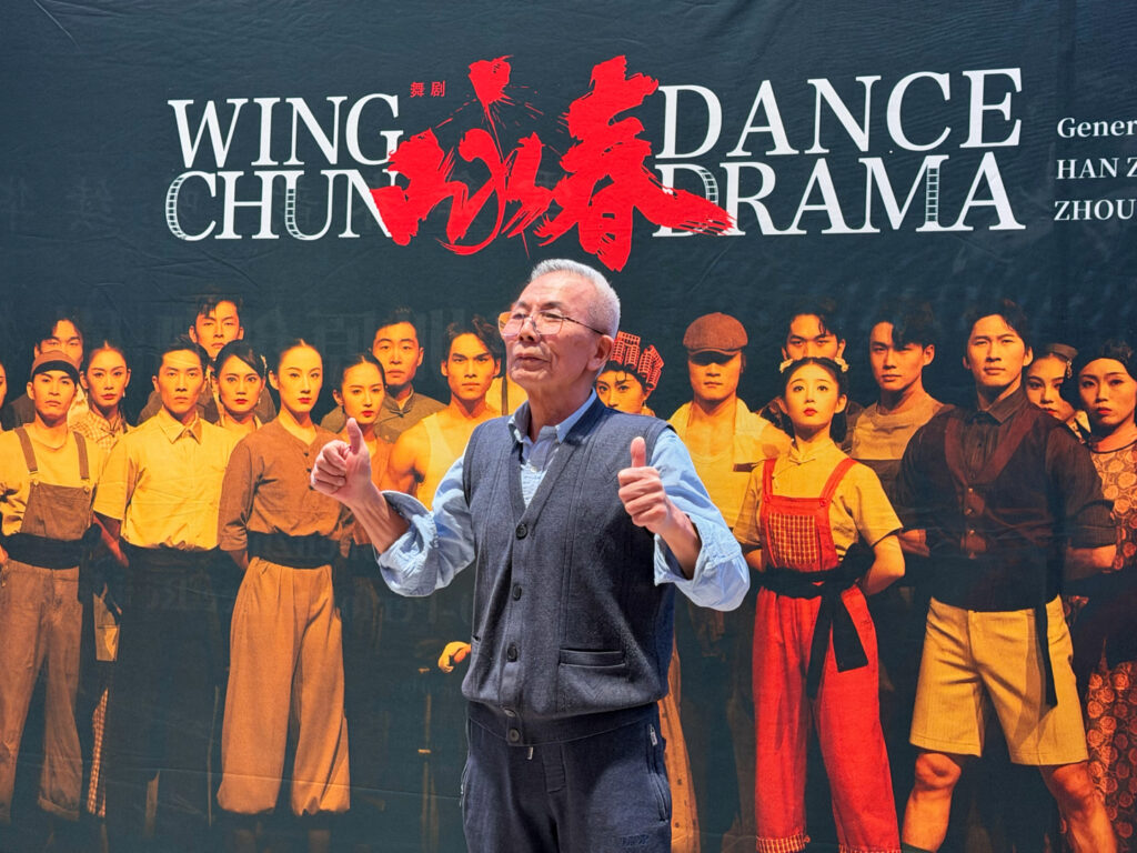《咏春》的艺术匠心体现在诸多细节之中。尤为值得一提的是,主要演员的服装均采用中国国家级非物质文化遗产“香云纱”制作。这种源自岭南地区的古老丝织品,经过特殊染整工艺,呈现出深邃而富有质感的色泽,在舞台光影的雕琢下,不仅烘托出武者沉稳内敛的气质,更让东方美学在国际舞台上获得了具象而高级的表达。