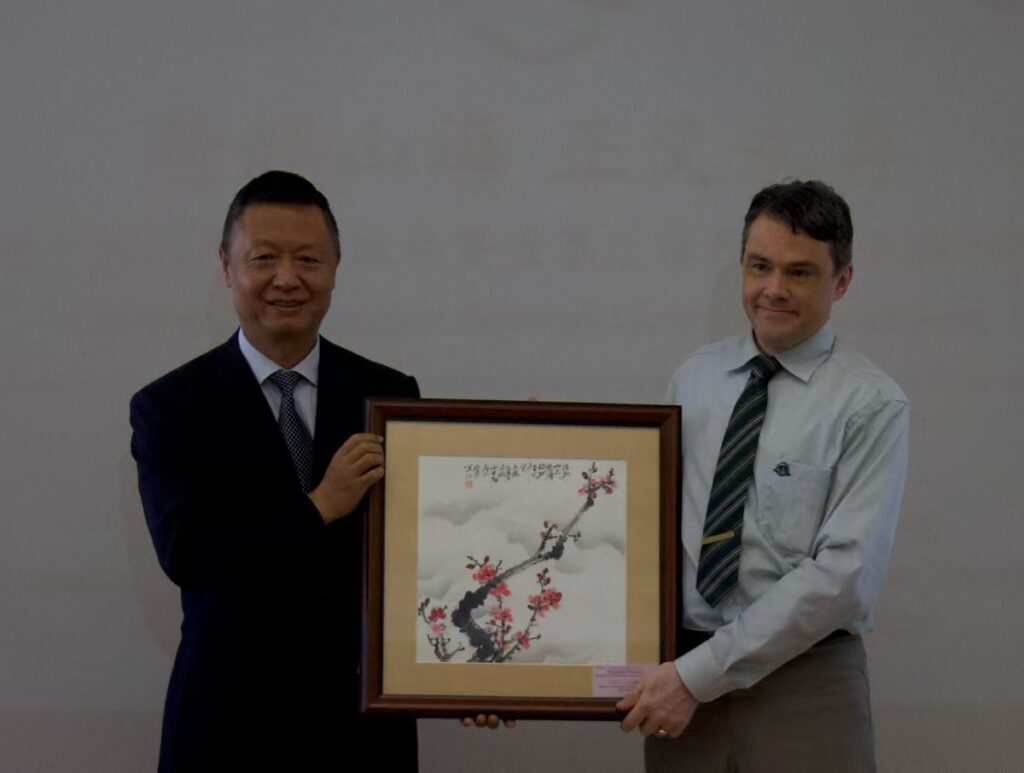 活动期间,罗伟东总领事向白求恩纪念馆赠送了一幅题为《咏梅》的中国画作。