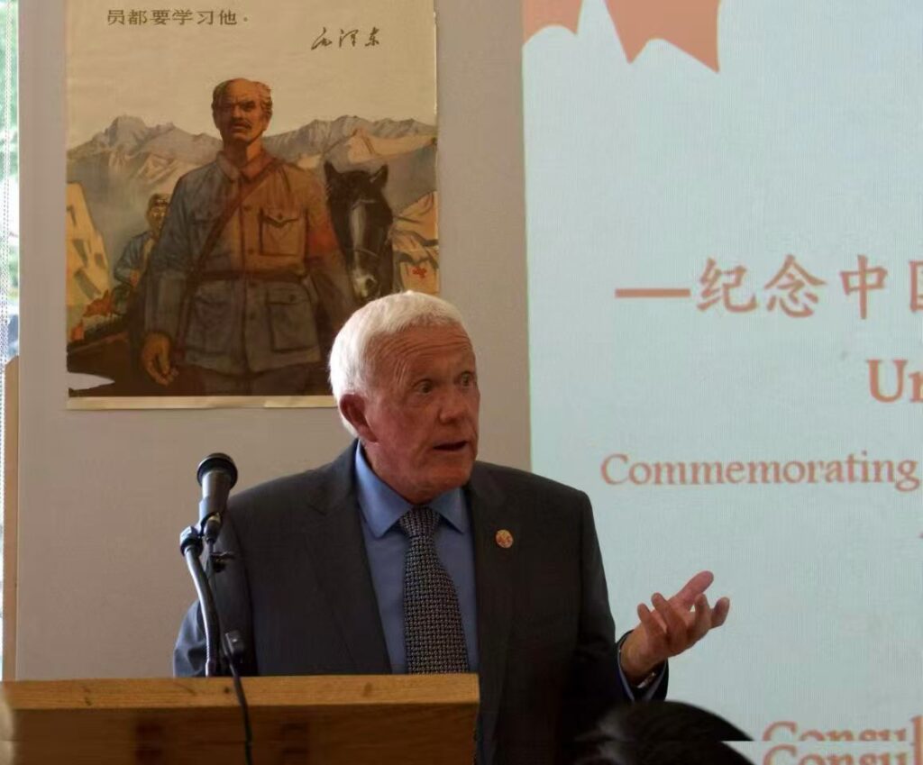 格雷文赫斯特市议员皮特·约翰斯顿在发言中回顾了加中两国在二战期间的盟友关系,强调共同的历史胜利是两国人民的宝贵财富。
