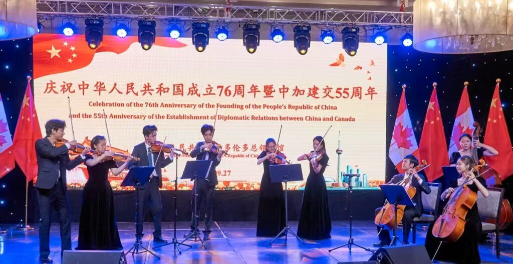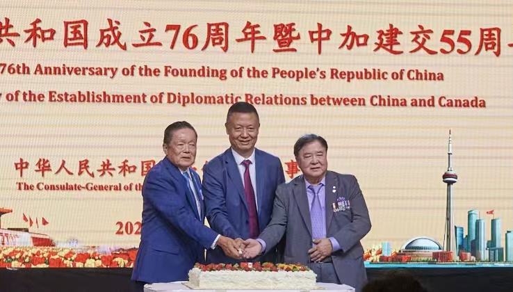 多伦多讯 记者燕雲报道 当地时间9月27日晚,中国驻多伦多总领事馆隆重举办中华人民共和国成立76周年国庆招待会。加拿大三级政府官员、各国驻多伦多领团、香港驻多伦多经济贸易办事处代表,以及当地工商、文化、教育、科技、媒体等各界友人、华侨华人、中资机构和留学生代表等700余位嘉宾欢聚一堂,共同庆祝这一重要历史时刻。