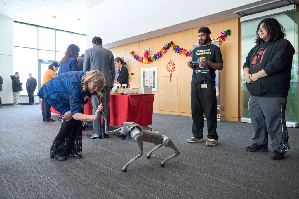 来,拍个手,机器人小哥祝贺中加教育合作办学论坛圆满成功。