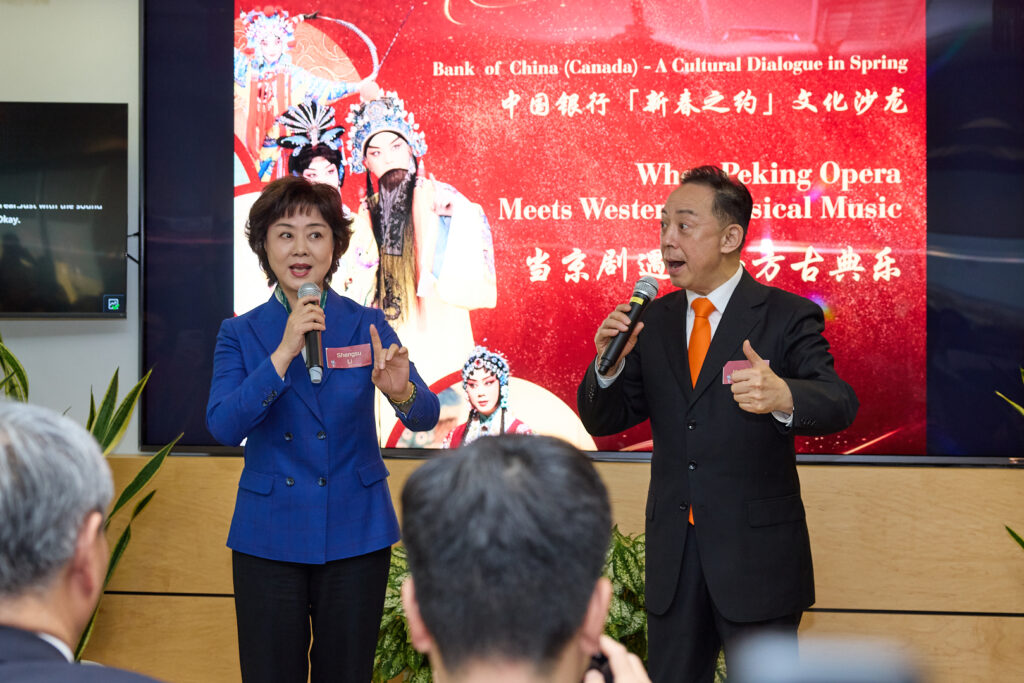 中国银行(加拿大)行长邓军在致辞中表示,中国银行自1930年资助京剧大师梅兰芳赴美巡演以来,持续支持中华优秀传统文化在海外的传播。他说:“在加拿大,中国银行(加拿大)很荣幸能够继承这一传统。除了作为中加经济与合作的桥梁,我们也同样致力于支持文化和人文交流。”邓军介绍,中国银行总行近年支持费城交响乐团访华,中国银行(加拿大)自2024年起与多伦多交响乐团合作支持中国农历新年音乐会。