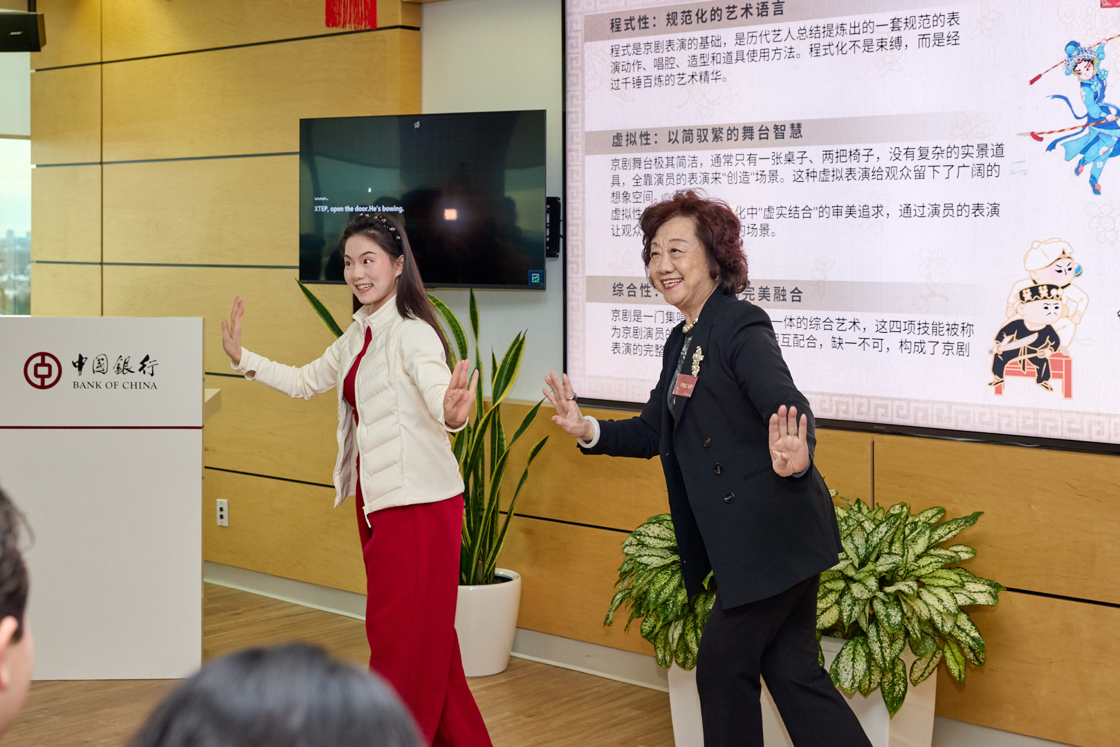 中国国家京剧院演员郭铸锋以“一戏一世界”为题,系统介绍京剧历史与行当体系,现场展示并邀请嘉宾上台体验基本功。