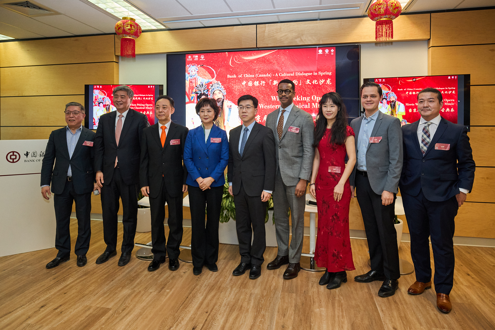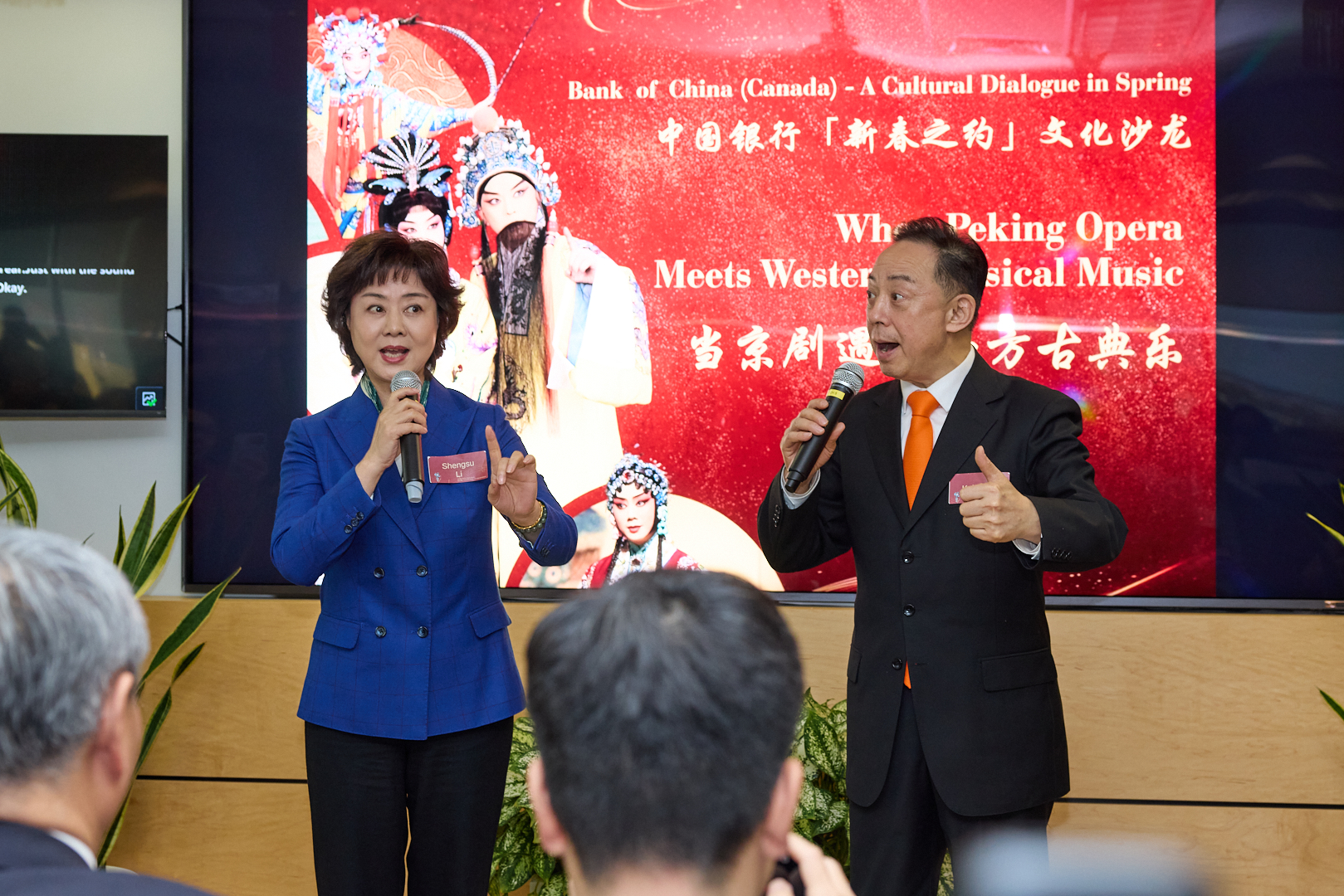 本网多伦多讯 记者吕欧图文报道 当地时间2月12日下午,中国银行(加拿大)在多伦多总部举办“新春之约”文化沙龙,邀请中国国家京剧院著名表演艺术家于魁智、李胜素与多伦多交响乐团首席执行官马克·威廉(Mark Williams)、指挥家Nicholas Sharma及乐团小提琴演奏家Kun Yan同台交流。本次活动以“当京剧遇见西方古典乐”为主题,中国银行(加拿大)行长邓军、中国驻多伦多副总领事卞周洲、中加文化交流协会主席高如东及中加文化界、工商界、侨界嘉宾百余人出席。